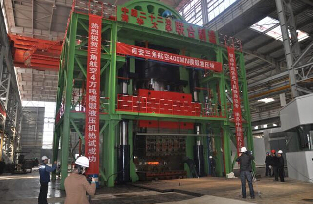 2012年3月3日,中国首台40000吨级模锻液压机,在西安阎良三角航空科技有限责任公司进行热试车,并顺利锻造出了大型盘类件产品。该机采用钢丝缠绕预应力结构。
