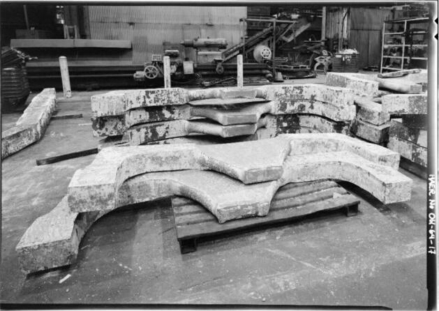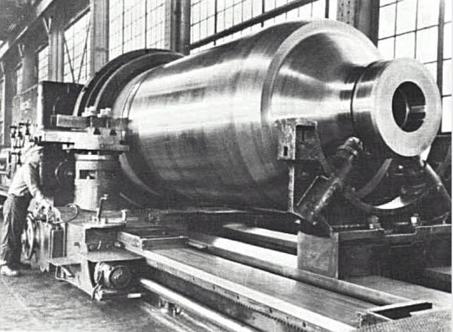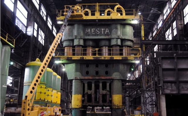 美国铝业位于俄亥俄州克利夫兰工厂的45000吨模锻水压机。1955年由梅斯塔(MESTA)公司制造。